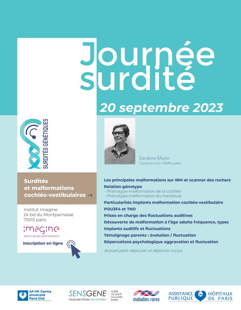 Le mercredi 20 septembre 2023, le CRMR surdités génétiques de l’hôpital Necker-Enfants malades organise sa journée annuelle dont la thématique est : Surdités et malformations cochléo-vestibulaires.