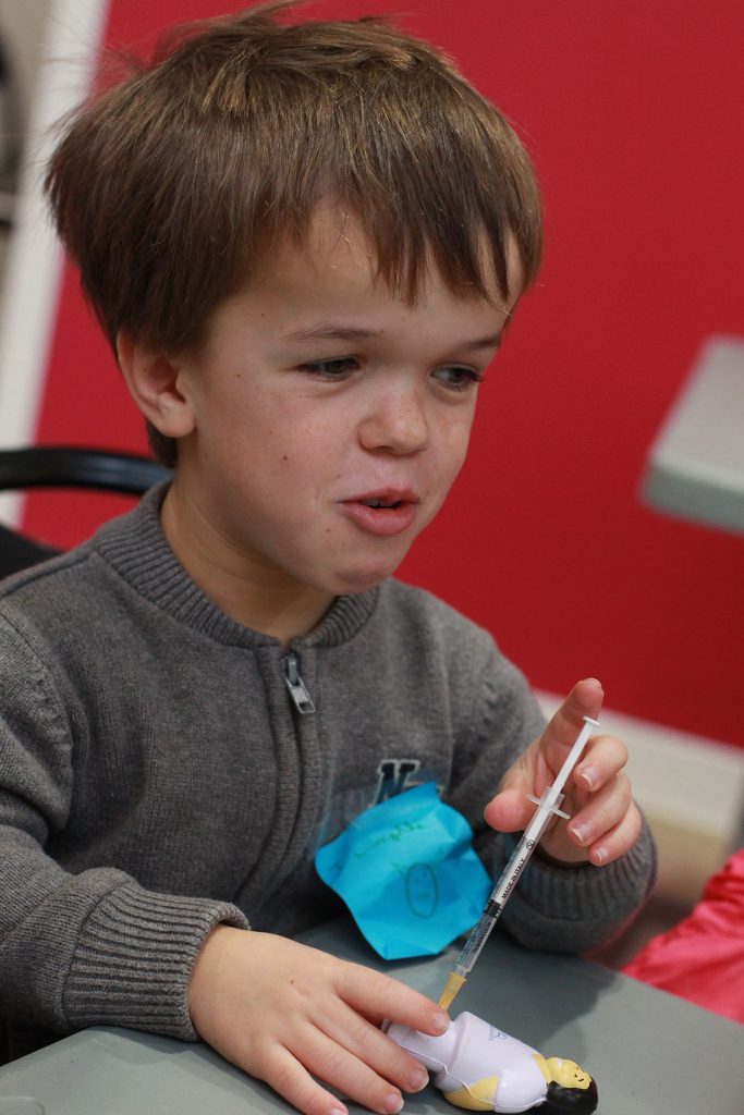 Ici, pas de tabou, tout peut être dit et tout doit être dit pour évacuer toutes sources d’angoisses ou de peurs chez ces enfants. Cela leur permet également de mieux comprendre le pourquoi de ce traitement et de réduire au maximum l’appréhension provoquée chez eux par ces injections. Et pour dédiaboliser cette piqûre, quoi de mieux qu’une séance de travaux pratiques.