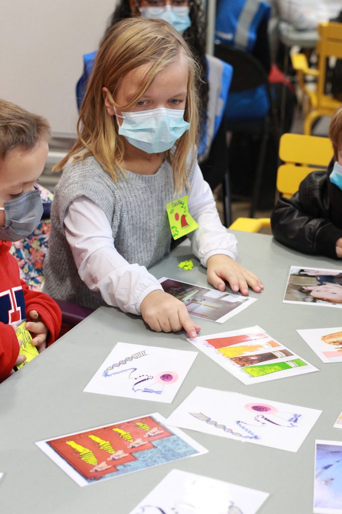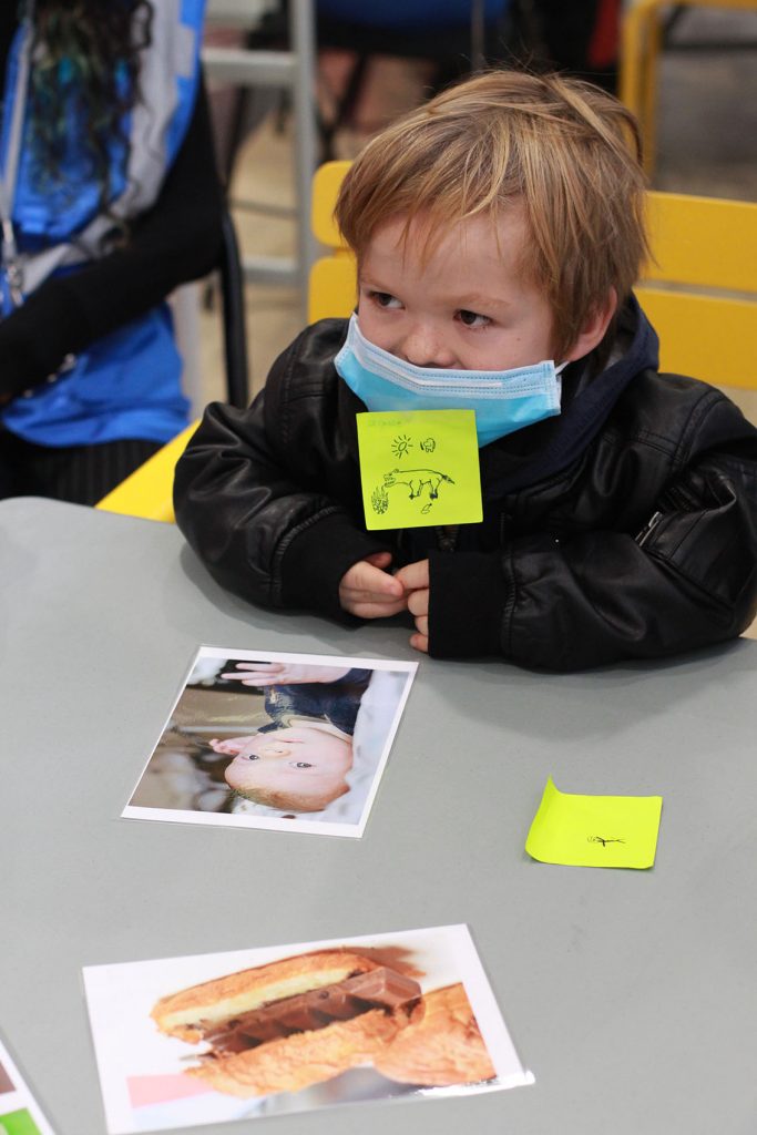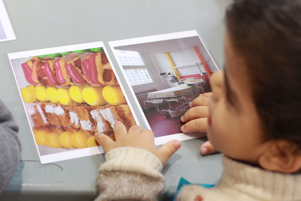 Tout en continuant sur le principe du jeu, une dizaine de photos sont disposées sur la table au milieu des enfants. Les encadrantes demandent alors aux enfants de commenter ces photos en disant ce qu’ils y voient et ce que cela évoque pour eux. Parmi les photos, des images d’hôpitaux, d’ADN, des frères Dalton, de la nourriture ou des boissons. L’occasion pour les enfants d’évoquer les souvenirs de leur première hospitalisation, de l’annonce de leur maladie, de leur relation avec leur médecin mais aussi de parler des contraintes quotidiennes qu’implique l’achondroplasie dans leur vie d’enfant.