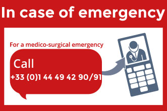 In the event of a medico-surgical emergency, we invite people to go to the Necker emergency and rapid diagnosis center (tel: +33 (0)1 44 49 42 90 / 91) or the closest medical emergency center to their place of residence.